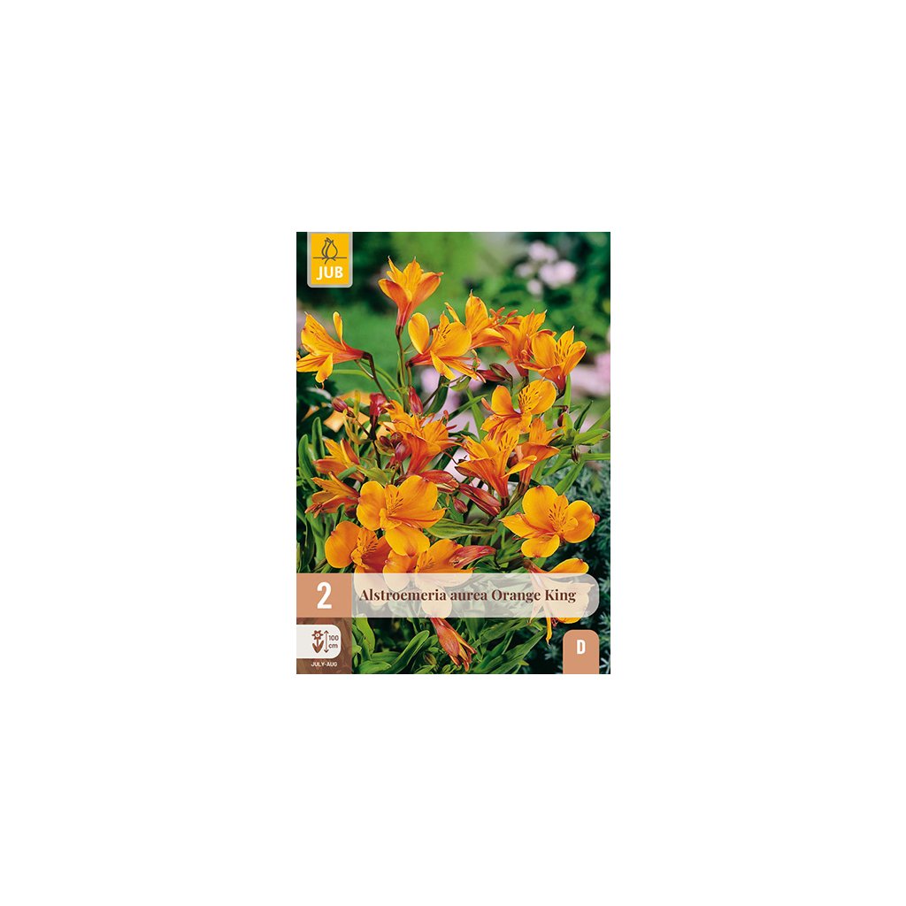 Alstroemeria 'Orange King' s oranžově žlutými květy je krásná trvalka, která je ve skutečnosti hlíza, ale je velmi vhodná pro okrasné rostliny. Alstroemeria se hodí i jako řezaná květina. Výška 9-1 cm