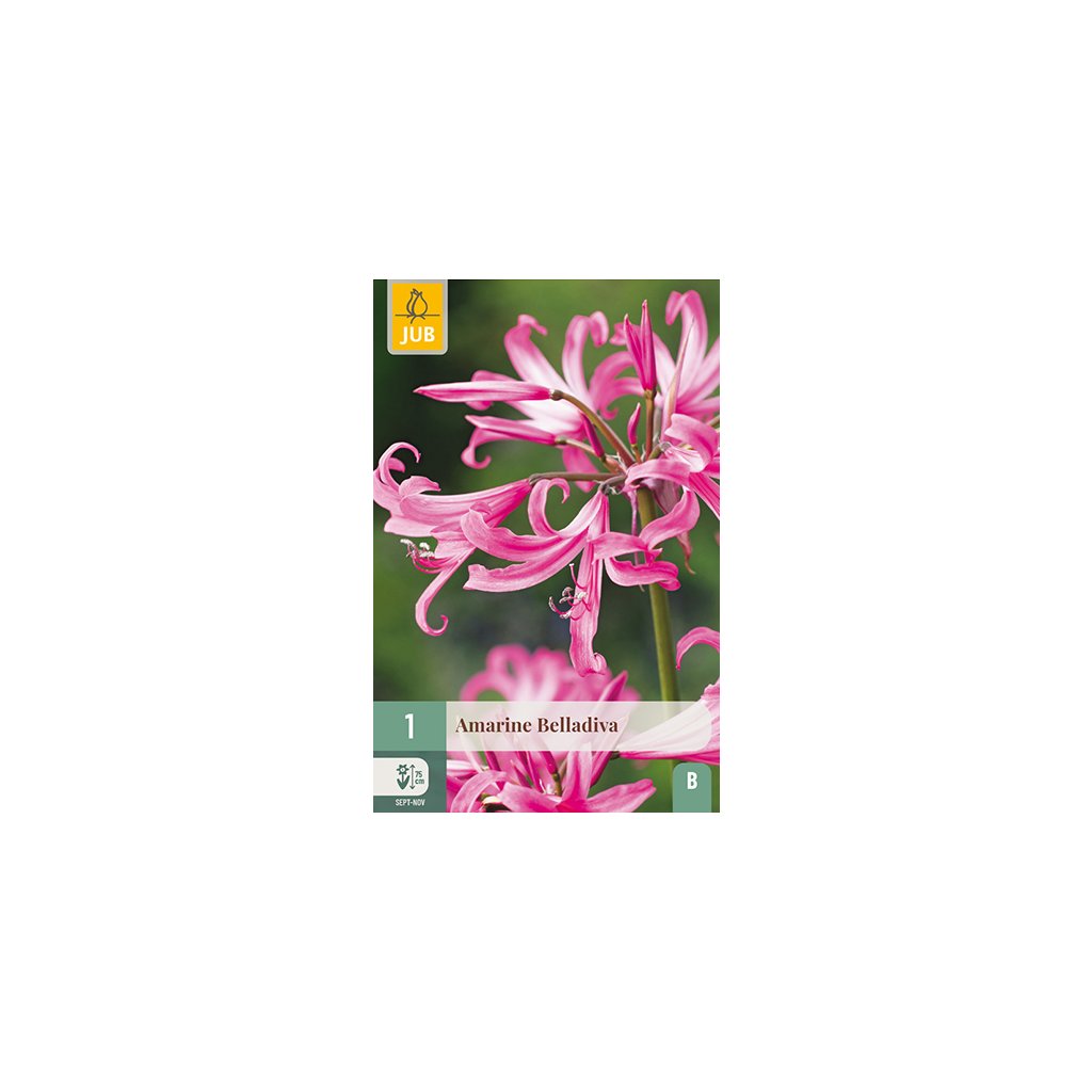 Amarine 'Belladiva' je kříženec neriny a amarylisu a poznáte ji podle krásných velkých růžových květů. Amarine 'Belladiva' je velmi vhodná jako řezaná květina. Cibulku zasaďte na slunné místo a těšte se z její nádhery kolem září.