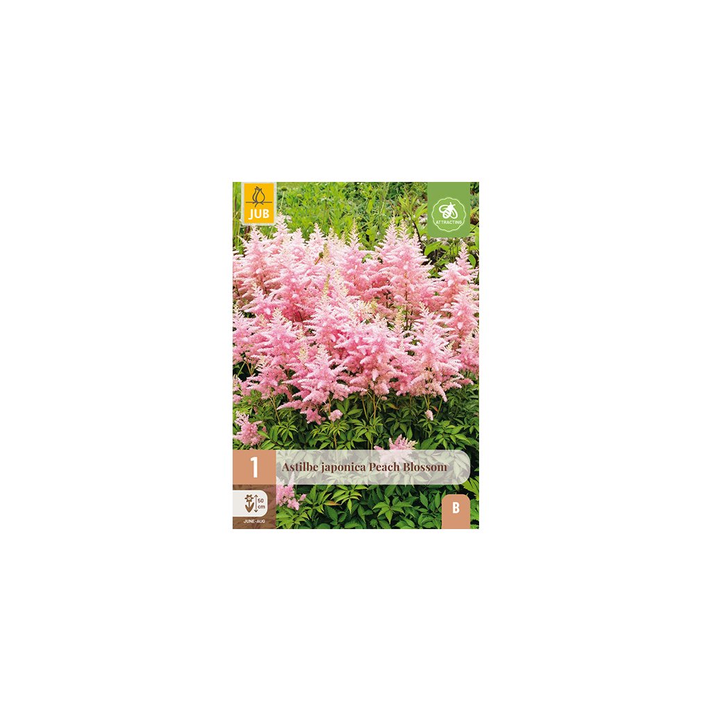 Astilbe japonica 'Peach Blossom' je růžově kvetoucí letnička. Její výška je asi 5 cm._x000D_