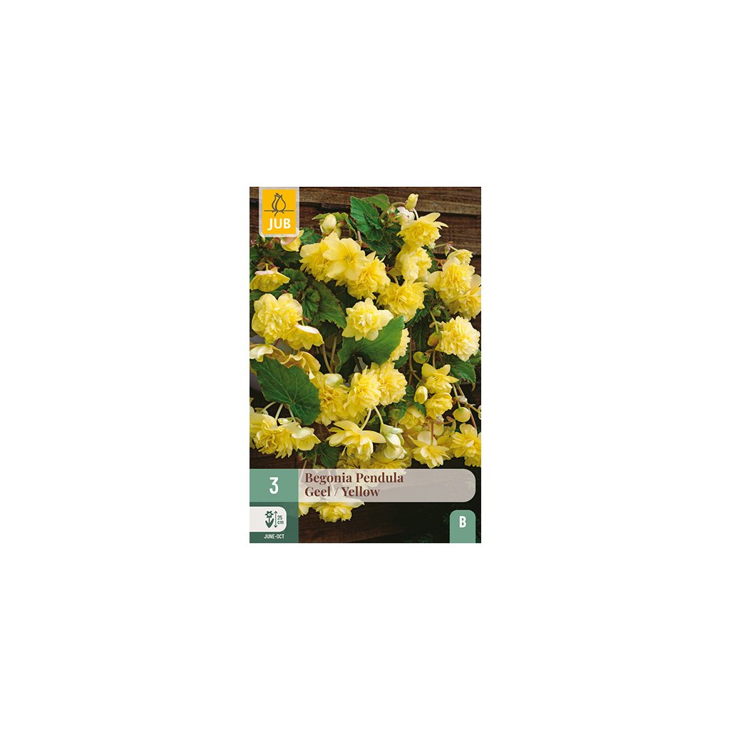 Žluté převislé begonie (Begonia pendula) jsou dvoukvěté. Nejlépe vypadají v květináčích a květináčích. Velmi dobře se jim daří také v závěsných koších. Převislé begonie kvetou celé léto až do mrazů.