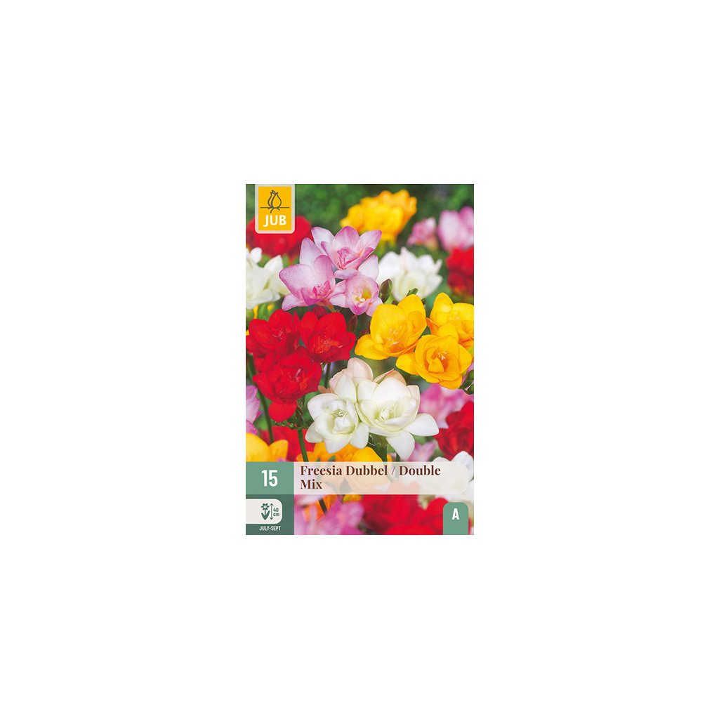 Freesia double mix vás překvapí nádherně vonícími dvojitými květy ve smíšených barvách. Tato odrůda frézie je bezproblémová zahradnice, která snadno kvete. Navíc je to vynikající řezaná květina a lze ji krásně kombinovat s dalšími letními cibulovinami.