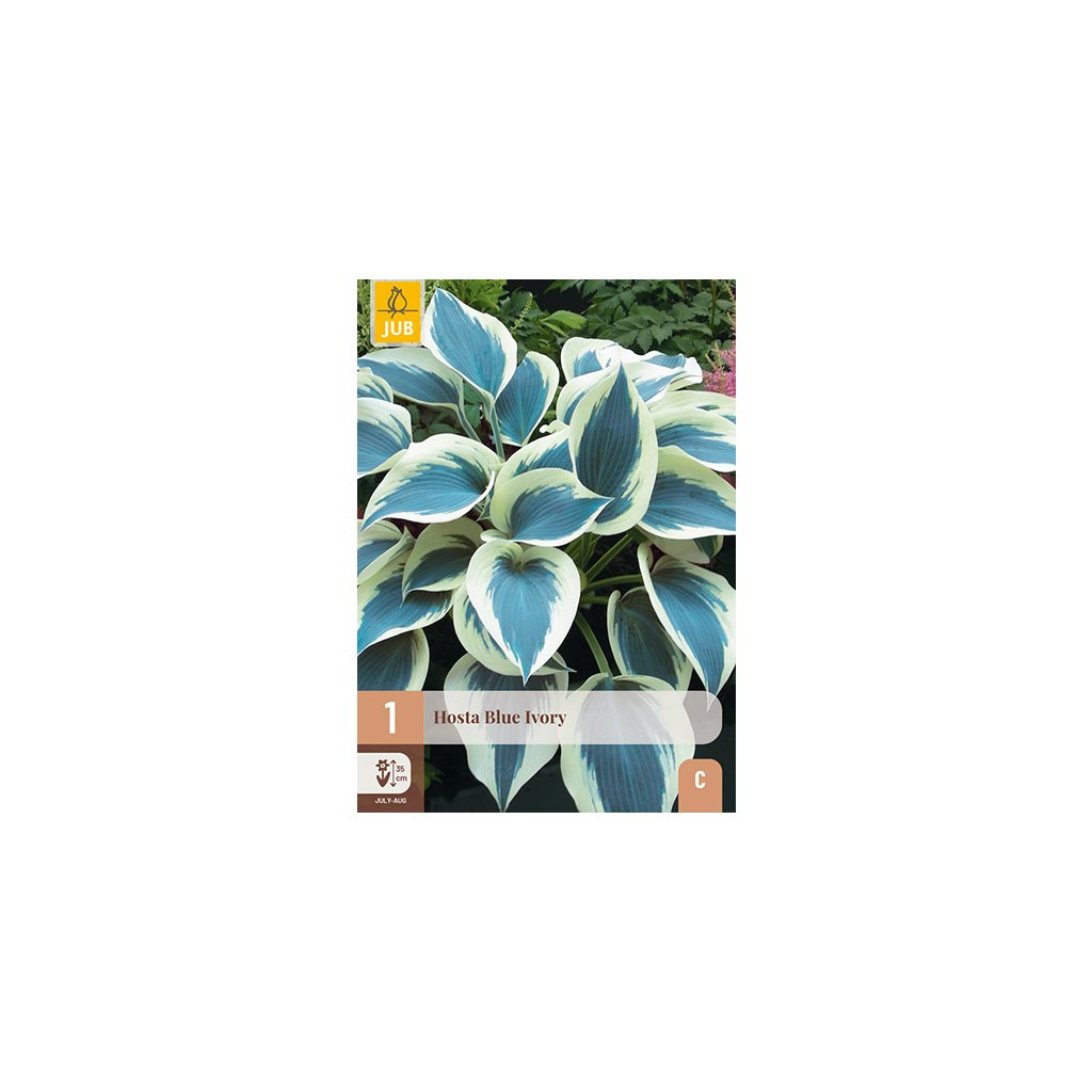 Hosta (Heart Lily) 'Blue Ivory' je oblíbená rostlina. Je to především díky dekorativním listům. Tato rostlina je velmi vhodná pro výsadbu do prostorného květináče. Dobře tvarované oválné až srdčité listy jsou nápadně modrozelené s bílou barvou V létě se podél květních stonků objevují bílé květy, které jsou nad listy a v létě dodávají rostlině další dekorativní hodnotu.