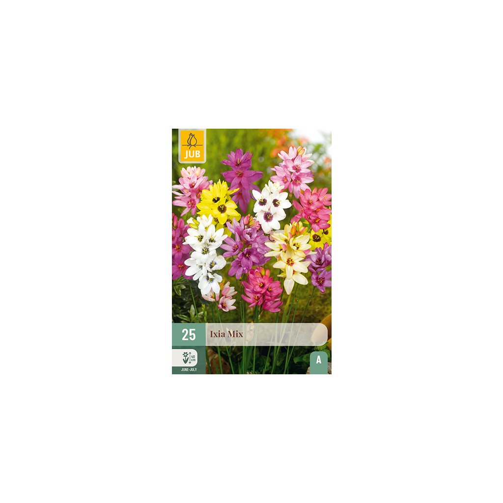 Ixia mix jsou veselé barevné letní cibuloviny. Ixie lze vysadit na okraj zahrady nebo do květináčů na terasu či balkon. Květy se denně zavírají a každý den se zvětšují. Přitahují motýly a včely. Ixie vypadají skvěle také ve váze !_x000D_