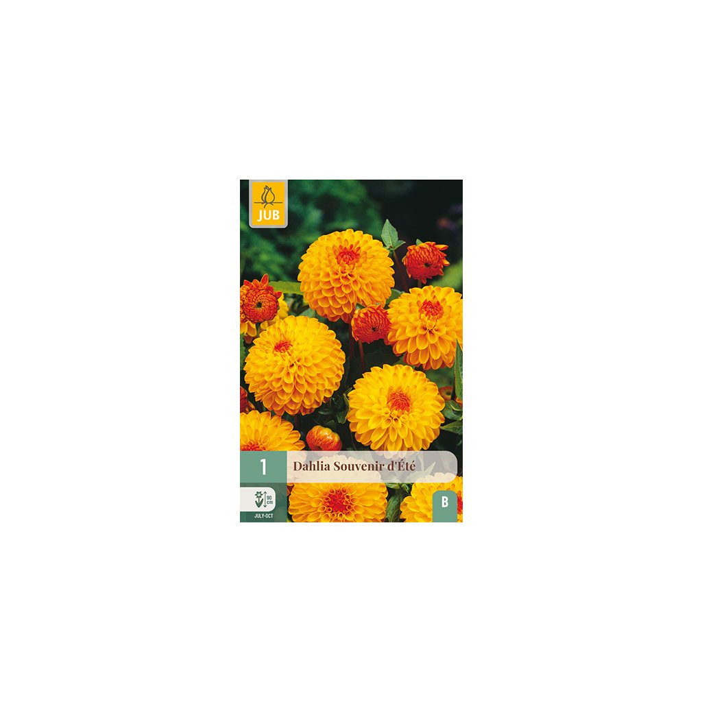 Pompon dahlia 'Souvenir D'Ete' má kulovité květy a je to vděčná letní květina, která vám bude dělat radost po celé měsíce. Jiřina 'Souvenir D'Ete' kvete celé léto od července až do prvních mrazů. Jiřinka 'Souvenir D'Ete' dorůstá výšky kolem 9 cm. Někdy je nutné květní stonky podepřít.