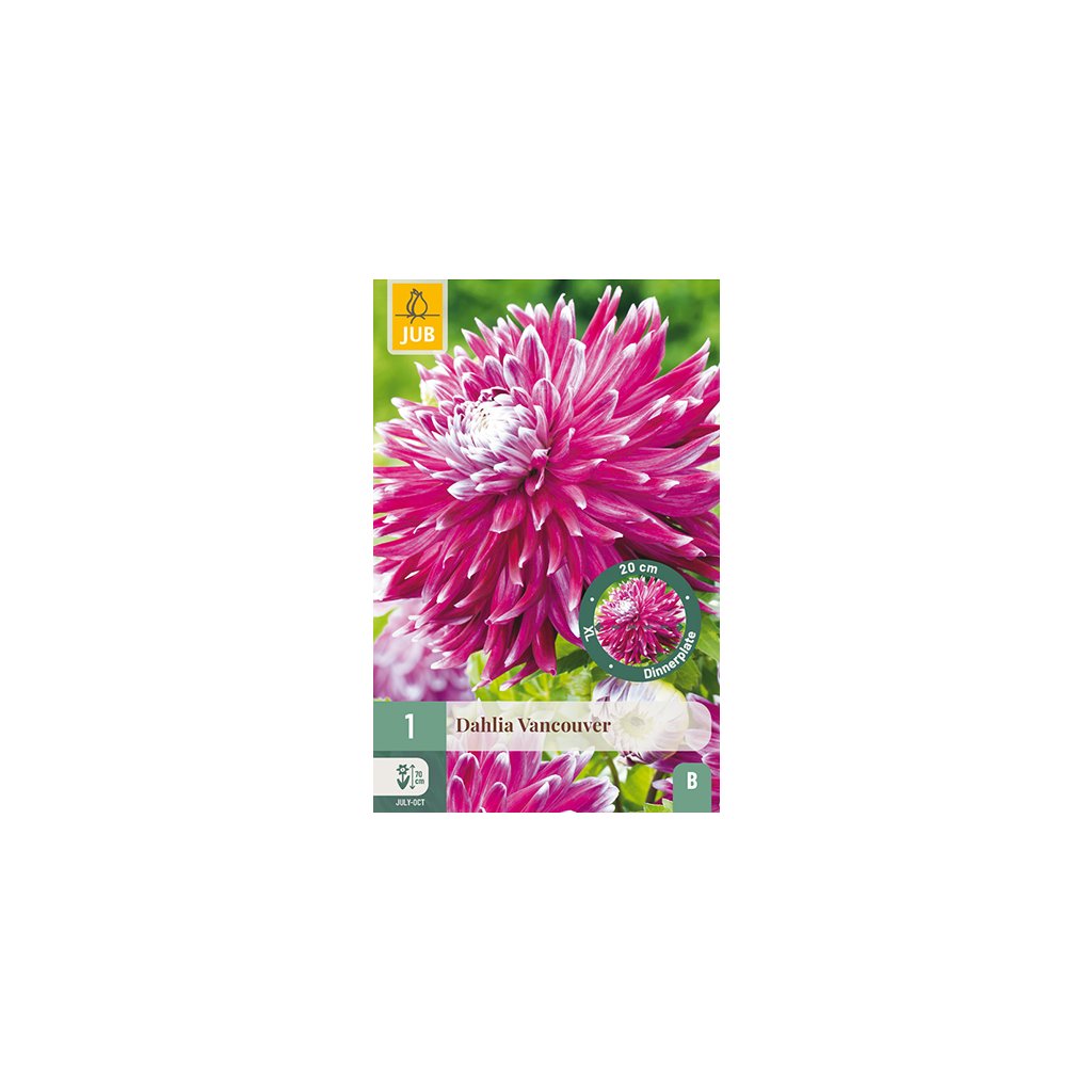 Velkokvětá jiřinka 'Vancouver' je vděčná letnička, která vám bude dělat radost celé měsíce. Jiřina 'Vancouver' kvete obrovskými květy celé léto od července až do prvních mrazů. Jiřinka 'Vancouver' dorůstá výšky 9-11 cm. Někdy je nutné květní stonky podepřít.