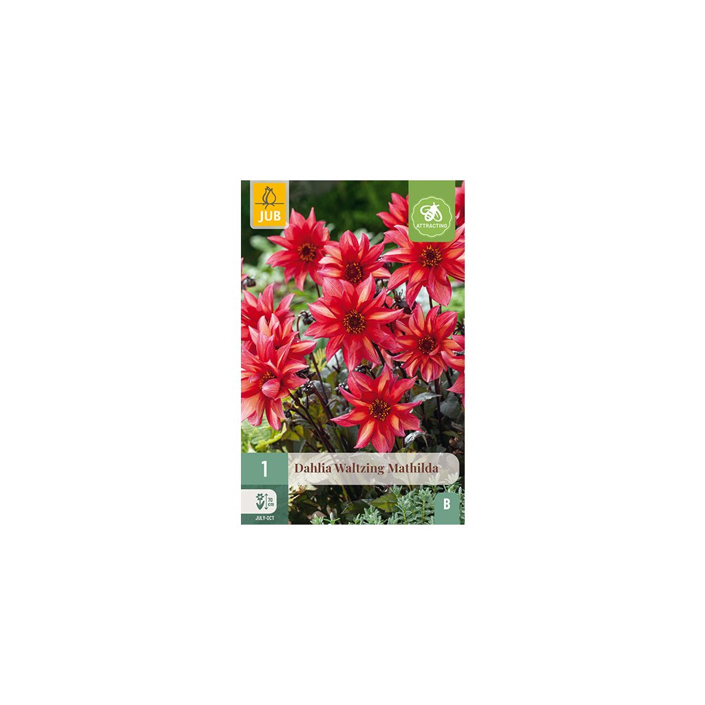 Červenooranžová jiřinka 'Waltzing Mathilda' je vděčná letnička, která vám bude dělat radost celé měsíce. Tato jiřinka s krásnými tmavými listy je výjimečným doplňkem vašeho záhonu. Jiřina 'Waltzing Mathilda' kvete celé léto od července až do prvních mrazů. Jiřina 'Waltzing Mathilda' dorůstá výšky asi 7 cm. Někdy je nutné květní stonky podepřít.