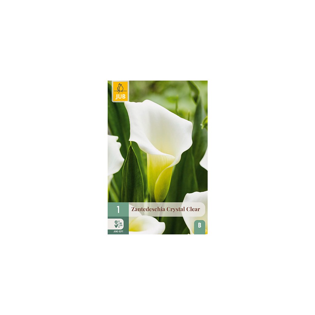 Zantedeschia 'Crystal Clear' s bílou barvou lze pěstovat v interiéru i exteriéru.