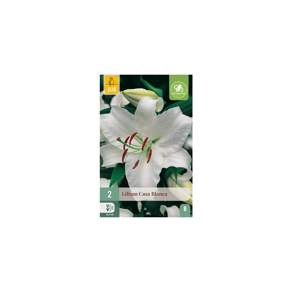 Bílá orientální lilie 'Casa Blanca' je krásná zahradní a řezaná květina. Její výška je 12 cm. lilie jsou nejkrásnější ve skupinách mezi trvalkami a keři. Po odkvětu mohou zůstat klidně v zemi a budou růst rok co rok. Lilie jsou také velmi vhodné do květináčů nebo květináčů.