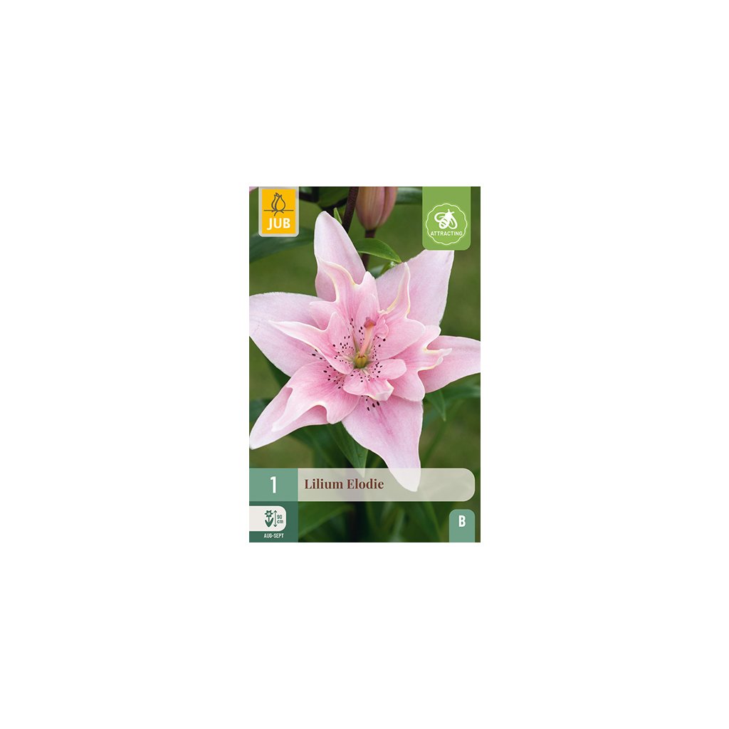 Růžová dvojitá asijská lilie 'Elodie' s krásnou barvou je nádherná zahradní a řezaná květina. Výška je 11 cm. Lilie se pěkně vyjímají ve skupinách mezi trvalkami a keři. Po odkvětu je lze zasadit do země. a budou kvést rok co rok. Lilie jsou také velmi vhodné do květináčů nebo květináčů.
