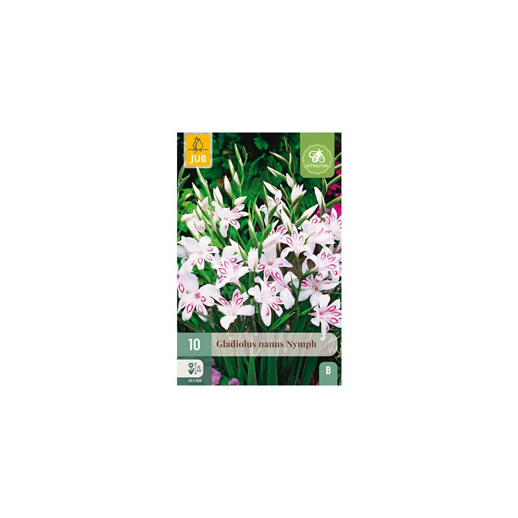 Drobnokvětý gladiolus nanus 'Nymph' je skutečně letní květina, která může kvést až do podzimu. Tento speciální drobnokvětý gladiolus dorůstá do výšky 6-7 cm a je také skvělou řezanou květinou. Tento gladiolus 'Nymph' je velmi květnatý a neměl by chybět ve vaší letní květinové zahradě.