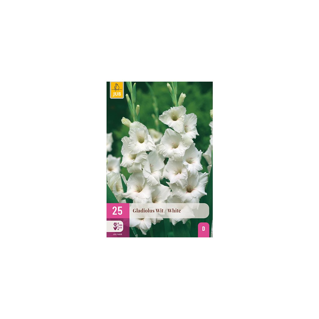 Gladiolus 'White'. Gladioly jsou pravé letní květy, které mohou kvést až do podzimu. Tento velkokvětý gladiolus dorůstá až 1 cm a je také krásnou řezanou květinou. Nezapomeňte proto na své zahradě s řezanými květinami vysadit řadu gladiol. Kromě toho gladioly velmi bohatě kvetou, a proto by neměly chybět ve vaší letní květinové zahradě.