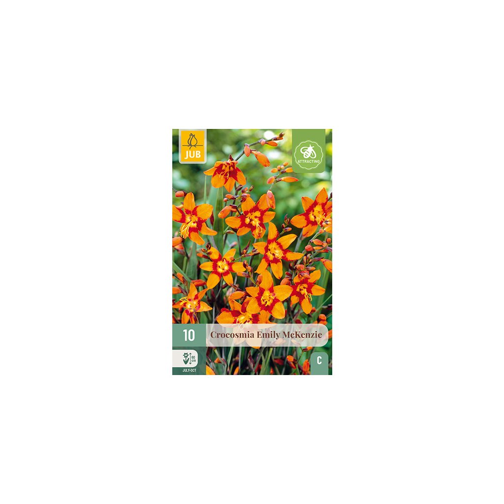 Crocosmia 'Emilie Mckenzie' je jednou z nejkrásnějších krokosmií pro okrajové partie. Její oranžovočervené květy dobře vyniknou mezi ostatními rostlinami v zahradě a na záhonech. Crocosmia 'Emilie Mckenzie' dorůstá do výšky asi 6 cm a nejlépe roste na slunném stanovišti. Tato krokosmie je vhodná i jako řezaná květina. Cibulky Crocosmia 'Emilie Mckenzie' ihned po obdržení zasaďte do volné půdy nebo do květináče. Pozor na pozdní (noční) mráz. Hloubka výsadby je 1 cm. Vzdálenost výsadby Crocosmia je přibližně 1 cm. Pro větší plochy vytvořte větší výsadbovou jámu a umístěte do ní více cibulí. Crocosmii lze dobře kombinovat s různými trvalkami a jiřinami ve stejných nebo kontrastních barvách.