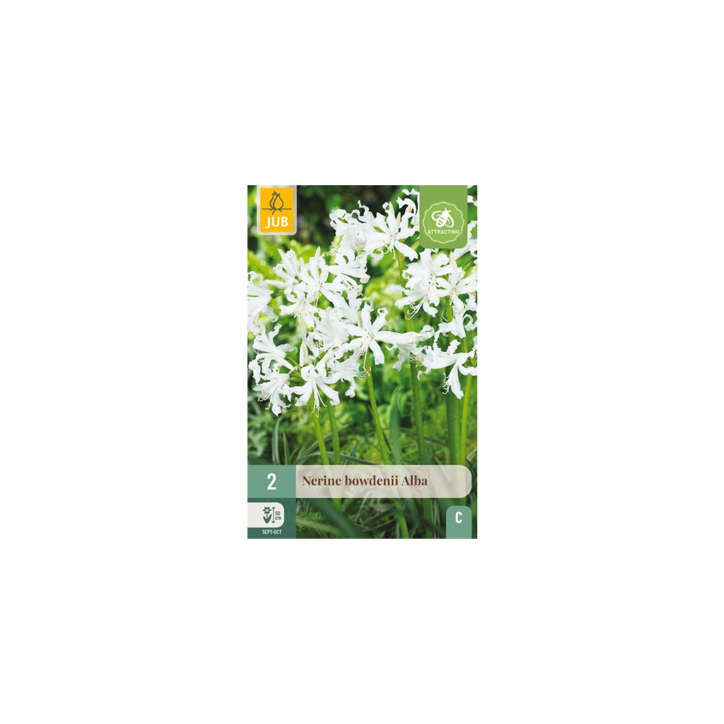 Když většina květin v zahradě začne vadnout, vykvete Nerine 'Bowdenii Alba' (září-říjen). Pokud to počasí dovolí, může kvést poměrně dlouho. Květy jsou bílé a stojí na vysokých, bezlistých, poměrně pevných stoncích Úzké okvětní lístky se stáčejí dozadu Trubkovité květy v deštnících s vyčnívajícími tyčinkami._x000D_