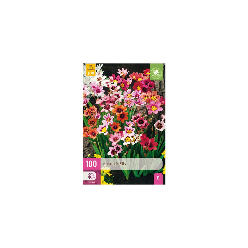 Směs Sparaxis tvoří směs pestrobarevných květů se žlutým srdcem._x000D_