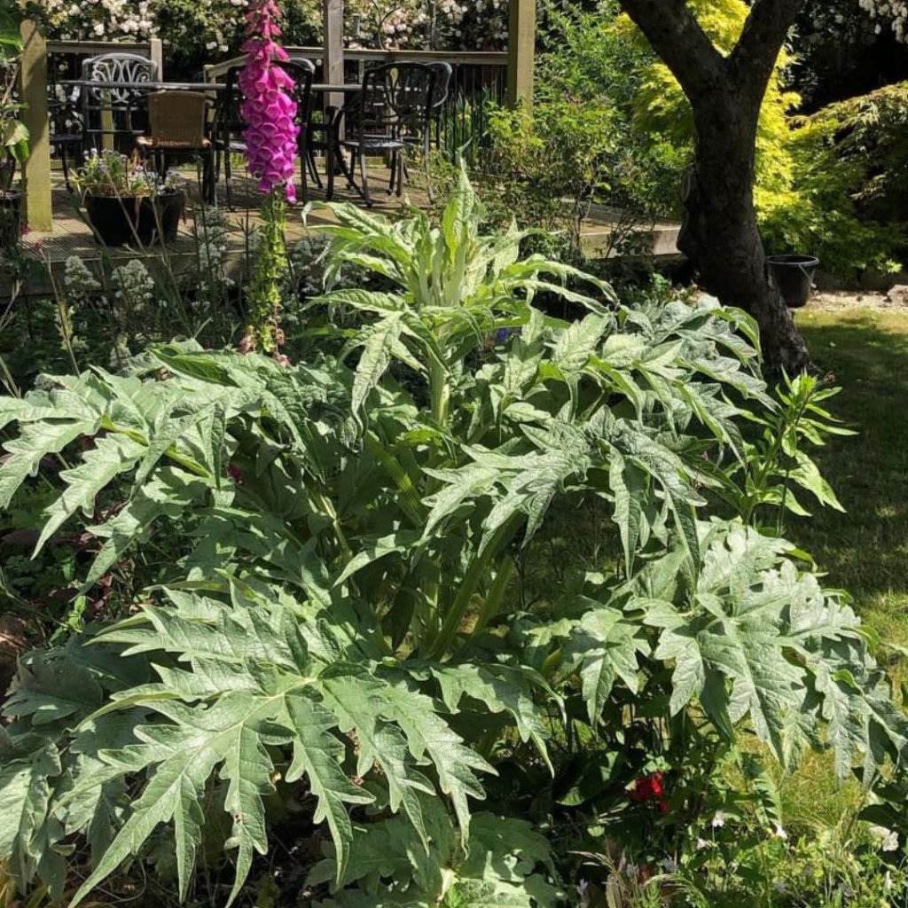 Kardony jsou méně známé příbuzné artyčoků, které se nejčastěji pěstují pro své tlusté dužnaté stonky (představte si obří přerostlý celer, ale s chutí artyčoku), nikoli pro květní pupeny. Jedná se o křehkou trvalku, která ve vegetativním stavu dorůstá do výšky asi 4 m, přičemž květní stvoly dosahují výšky přes 8 m. Kardony pocházejí ze Středomoří a jsou považovány za specialitu a jsou ceněny v kuchyních celého regionu. Součástí přitažlivosti této zeleniny je její mírná hořkost, která se musí zkrotit několikatýdenním blanšírováním (zbavením slunečního světla) na poli. Toho se nejčastěji dosáhne svázáním rostlin provázkem a obalením stonků igelitem, lepenkou nebo starými pytli na krmivo, ale tato konkrétní odrůda je pojmenována podle staré piemontské metody blanšírování pod zemí. Rostlina se přirozeně snaží růst svisle ke slunci, což dává zduřelým stonkům charakteristické zakřivení a přezdívku gobbo nebo hrbáč. V naší oblasti je pěstujeme jako letničky a s výsevem čekáme až na přelom května a června, protože dřívější výsadby do poloviny léta zabolí. Skutečně majestátní rostlina a nádherný doplněk každé zahrady.
