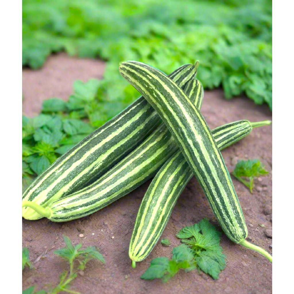 Arménské okurky Painted Serpent Striped jsou jedinečné podlouhlé, krásně pruhované okurky s mírně vystouplými hřebeny a střídajícími se tmavě a světle zelenými pruhy. Tyto chlupaté okurky připomínající hada se vyznačují křupavou, jemnou strukturou a mírně sladkou, osvěžující chutí, díky čemuž se skvěle hodí do salátů, na nakládání a pro labužníky.