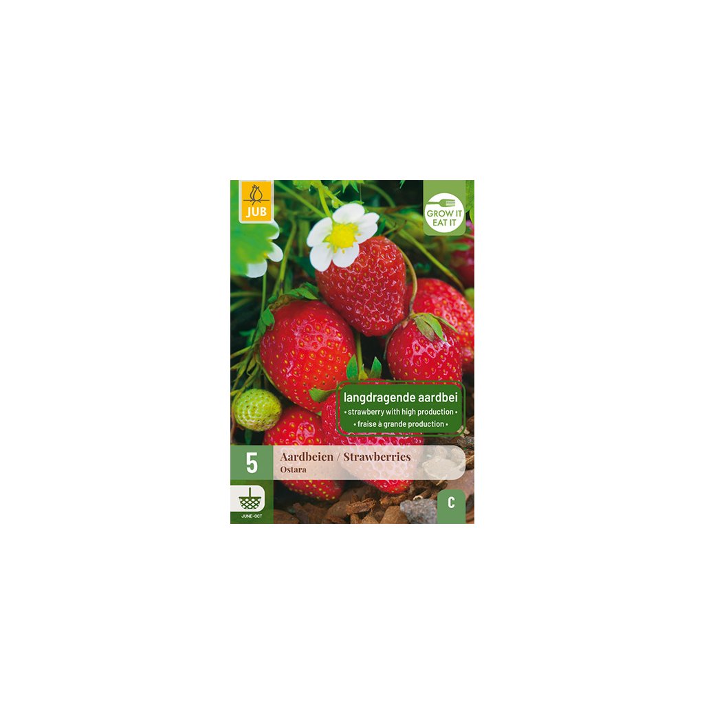 V jedlé zahradě by samozřejmě neměla chybět fragaria (jahodník) 'Ostara'. Jahody jsou nejlepší těsně po sklizni, takže je skvělé mít je na zahradě. Fragaria 'Ostara' je vytrvalá odrůda, takže si jahody na zahradě můžete užívat několik měsíců. Vysaďte tuto odrůdu jahodníku do půdy bohaté na živiny na velmi slunné místo na zahradě a v červnu a červenci si můžete pochutnávat na lahodných jahodách. Plody jsou velké a mají sytě červenou barvu. Abyste zajistili velké jahody, prořeďte během roku květy, aby byl dostatek potravy pro zbývající květy.