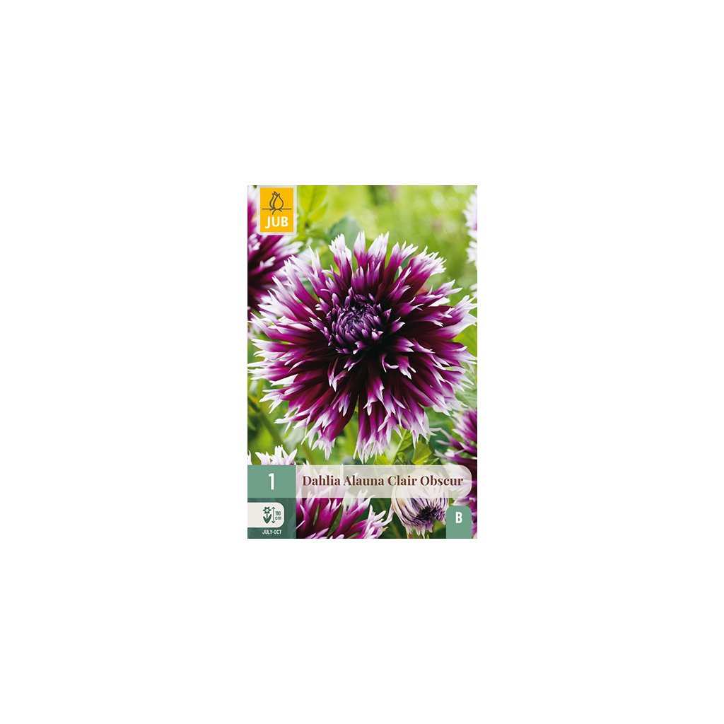 Speciální jiřinka fimbriata 'Alauna Clair Obscur' je vděčná letní květina, která vám bude dělat radost po celé měsíce. Jiřinka 'Alauna Clair Obscur' kvete celé léto od července až do prvních mrazíků. Jiřinka 'Alauna Clair Obscur' dorůstá výšky 9-11 cm. někdy je nutné stonky květů podepřít. Hlízy jiřinek lze vysazovat na jaře. Jiřinka 'Alauna Clair Obscur' je citlivá na mráz, proto pozor na pozdní noční mrazíky. Vykopejte prostornou výsadbovou jámu, nakypřete půdu a vyplňte výsadbovou jámu kvalitní zeminou. Hlízy opatrně umístěte do výsadbové jámy a zasypte je 3-5 cm zeminy. Vzdálenost výsadby hlíz je 3-6 cm. Hlízy zalijte ihned po výsadbě. jiřiny kvetou nejhojněji na plném slunci. Hlízy po odkvětu uložte na bezmrazém místě a budete se z nich těšit po mnoho let. Jiřinka 'Alauna Clair Obscur' se dobře kombinuje s trvalkami a dalšími odrůdami jiřinek. Fialové a bílé květy jsou na záhonu opravdovým lákadlem pro oči. Jiřinka 'Alauna Clair Obscur' je také vynikající řezaná květina a má dlouhou životnost ve váze. Nejlepší doba pro řez jiřinek je brzy ráno. Stonky ihned vložte do vlažné vody s výživou pro řezané květiny.