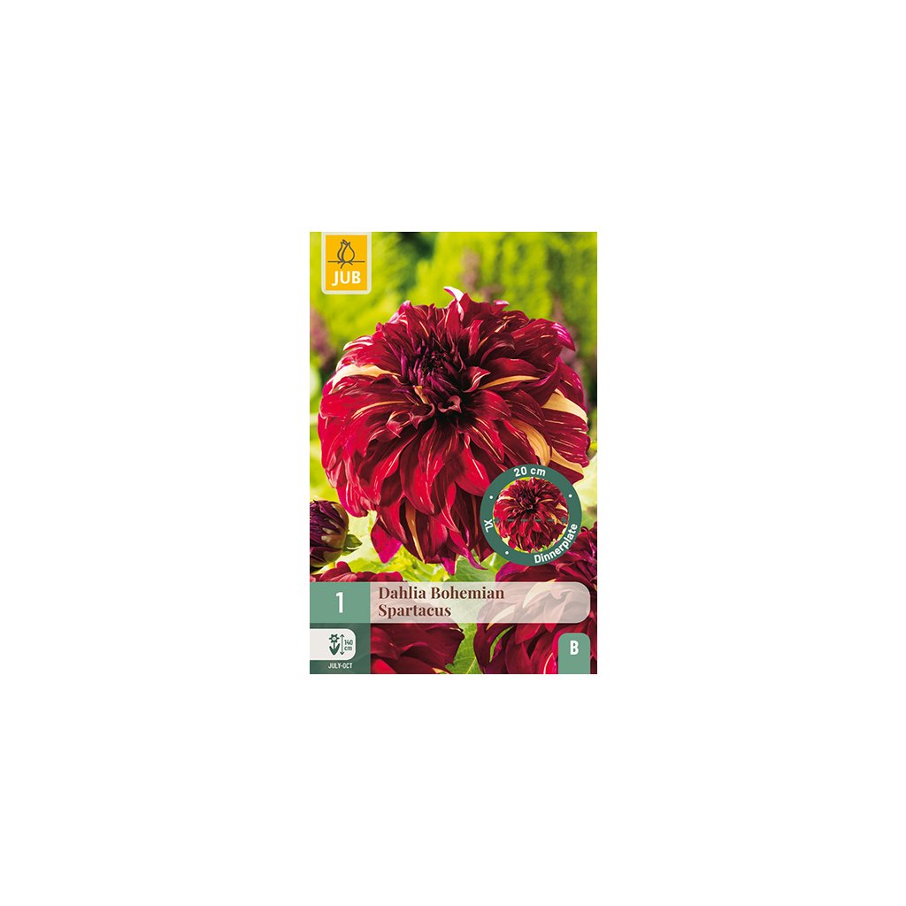 Velkokvětá jiřinka 'Bohemian Spartacus' je vděčná letní květina, která vám bude dělat radost po celé měsíce. Jiřina 'Bohemian Spartacus' kvete celé léto od července až do prvních mrazů. Jiřina 'Bohemian Spartacus' dorůstá výšky asi 9-1 cm. Někdy je nutné květní stvoly podepřít. Hlízy jiřinek lze vysazovat na jaře. Jiřinka 'Bohemian Spartacus' je citlivá na mráz, proto pozor na pozdní noční mrazíky. Vykopejte prostornou výsadbovou jámu, nakypřete půdu a výsadbovou jámu vyplňte kvalitní zeminou. Hlízy opatrně umístěte do výsadbové jámy a zasypte je 3-5 cm zeminy. Vzdálenost hlíz jiřinky 'Bohemian Spartacus' při výsadbě je 3-6 cm. Hlízy zalijte ihned po výsadbě. jiřiny kvetou nejhojněji na plném slunci. Hlízy po odkvětu uložte na bezmrazém místě a budete se z nich těšit po mnoho let. Jiřinka 'Bohemian Spartacus' se dobře kombinuje s trvalkami a dalšími odrůdami jiřinek. Její červenožluté květy jsou na záhonu opravdovým lákadlem pro oči. Jiřinka 'Bohemian Spartacus' je také vynikající řezaná květina a má dlouhou životnost ve váze. Nejlepší doba pro řez jiřinek je brzy ráno. Stonky ihned vložte do vlažné vody s výživou pro řezané květiny.