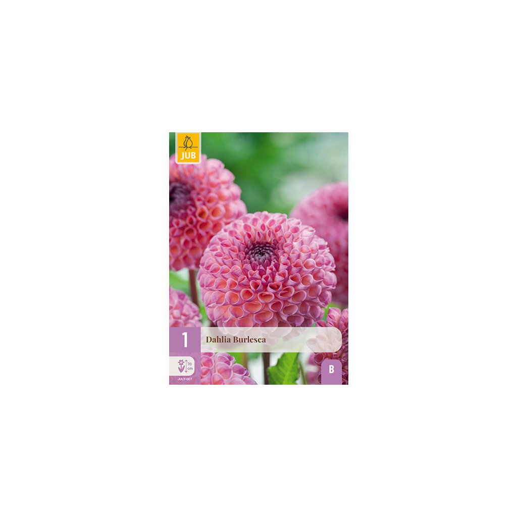 Pompon dahlia 'Burlesca' má kulovité květy a je vděčnou letní květinou, která vám bude dělat radost celé měsíce. Jiřina 'Burlesca' kvete celé léto od července až do prvních nočních mrazíků. Jiřinka 'Burlesca' dorůstá výšky kolem 7 cm. Někdy je nutné květní stonky podepřít.
