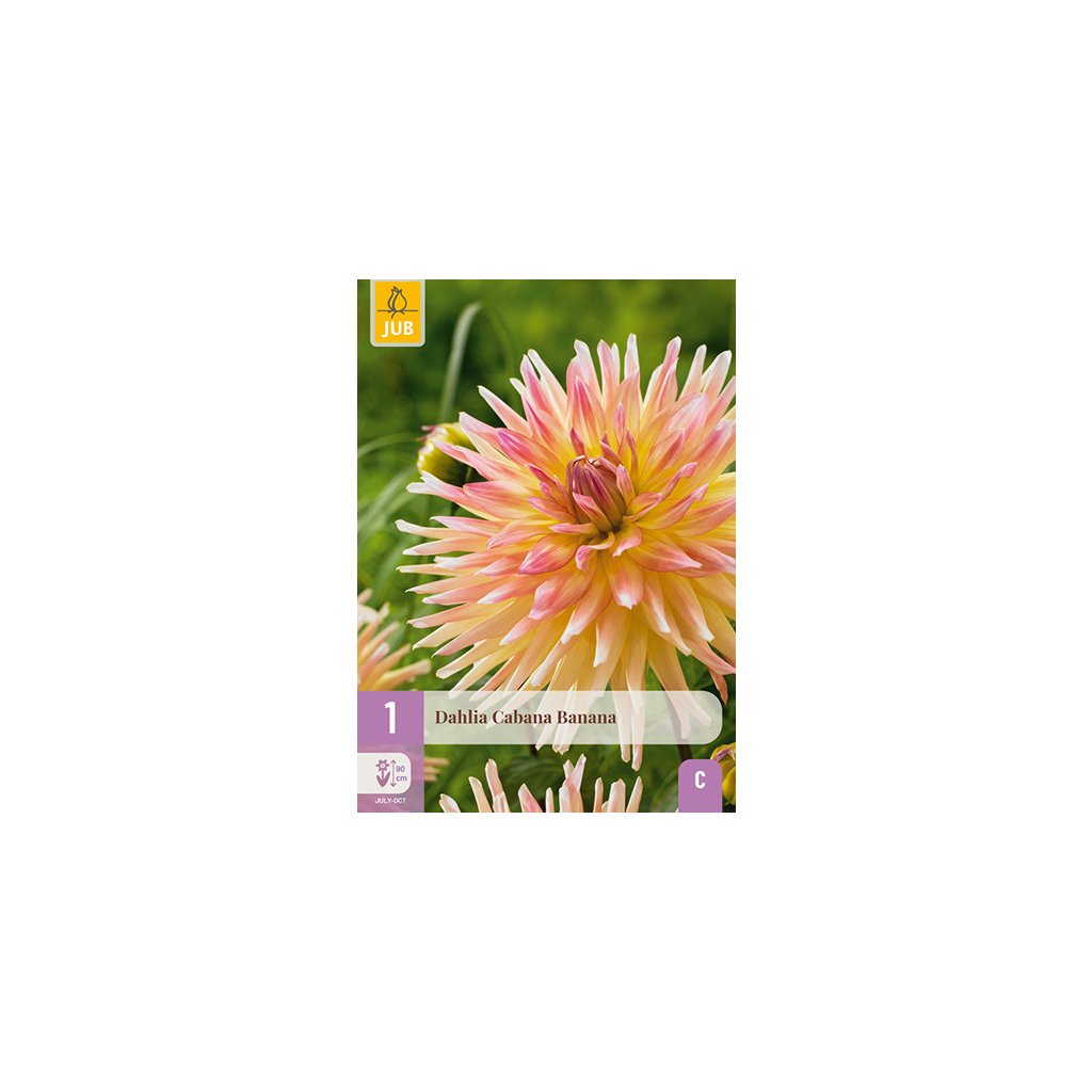 Velkokvětá kaktusová jiřina 'Cabana Banana' je vděčná letnička, která vám bude dělat radost celé měsíce. Jiřina 'Cabana Banana' kvete celé léto od července až do prvních nočních mrazíků. Jiřina 'Cabana Banana' dorůstá výšky přibližně 9 cm. Někdy je nutné květní stonky podepřít._x000D_ _x000D_ Hlízy jiřinek můžete vysazovat na jaře. Jiřinka 'Cabana Banana' je citlivá na mráz, proto si dejte pozor na pozdní (noční) mrazy. Vykopejte velkou výsadbovou jámu, zkypřete půdu a vyplňte ji kvalitní zeminou pro květináče. Hlízy opatrně umístěte do výsadbové jámy a zasypte je 3-5 cm zeminy. Vzdálenost výsadby hlíz je 3-6 cm. Hlízy ihned po výsadbě zalijte. Jiřinky kvetou nejhojněji na plném slunci. Hlízy po odkvětu uložte na bezmrazém místě a budete se z nich těšit po mnoho let._x000D_ _x000D_ Jiřinka 'Cabana Banana' se dobře kombinuje s trvalkami a dalšími odrůdami jiřinek. Její květy jsou na záhonu opravdovým lákadlem pro oči. Jiřinka 'Cabana Banana' je také vynikající řezaná květina a má dlouhou životnost ve váze. Nejlepší doba pro řez jiřinek je brzy ráno. Stonky umístěte přímo do vlažné vody s výživou pro řezané květiny.