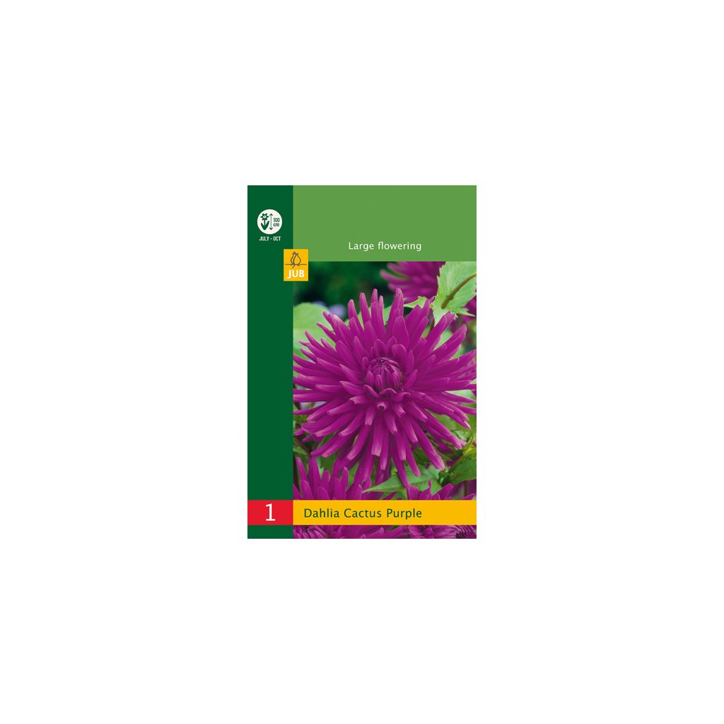 Jiřina 'Cactus Purple'. jiřiny jsou vděčné letní květiny, které vám budou dělat radost celé měsíce. Jiřiny kvetou celé léto od července až do prvních mrazů. Tyto jiřiny dorůstají výšky +/- 9-1 cm. Někdy je nutné květní stonky podepřít.