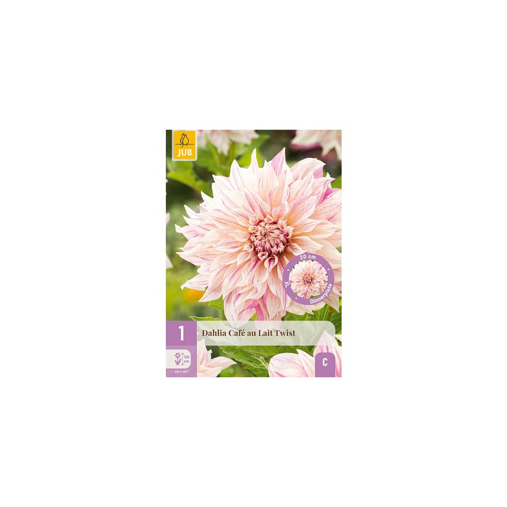 Velkokvětá jiřinka 'Café au Lait Twist' je vděčná letnička, která vám bude dělat radost celé měsíce. Jiřina 'Café au Lait Twist' kvete obřími květy po celé léto od července až do prvních nočních mrazíků. Jiřinka 'Café au Lait Twist' dorůstá výšky přibližně 1-12 cm. Někdy je nutné květní stonky podepřít.