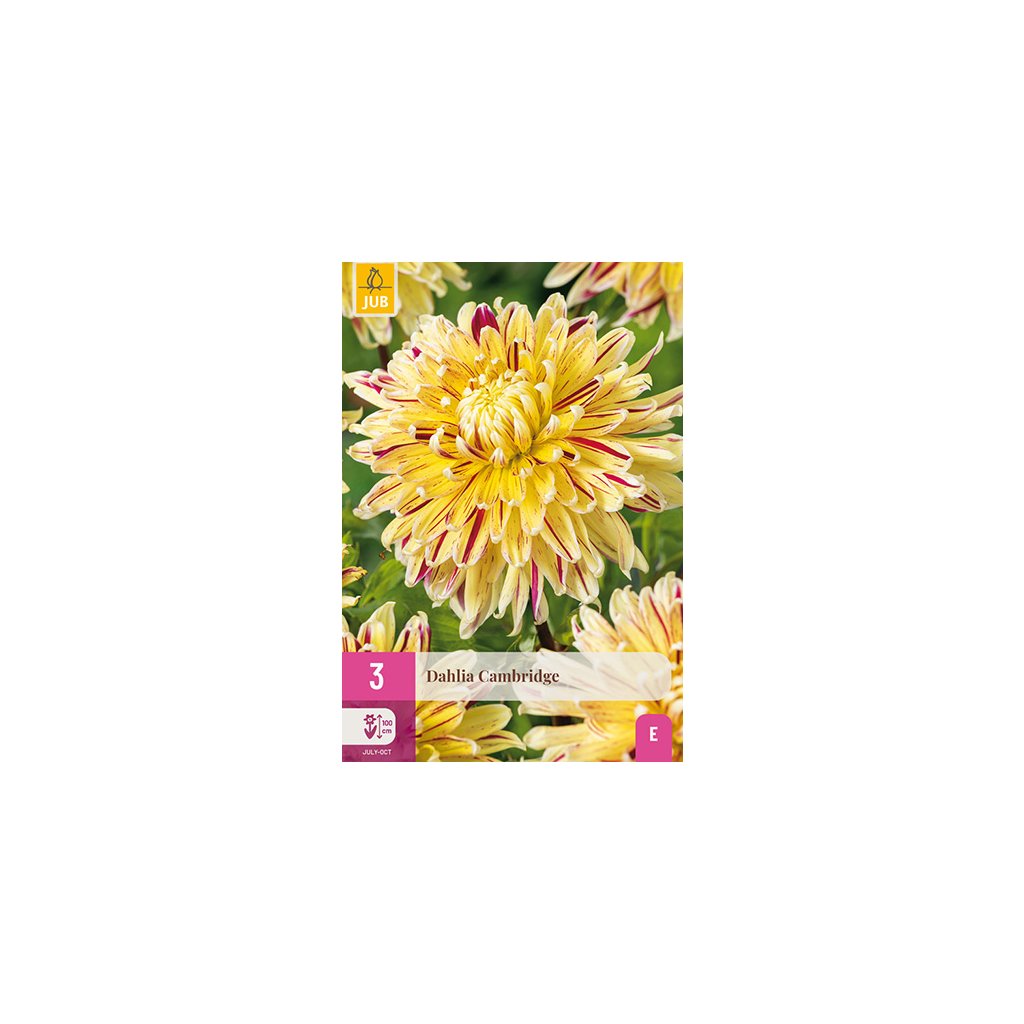 Velkokvětá dekorativní jiřinka 'Cambridge' je vděčná letní květina, která vám bude dělat radost po celé měsíce. Jiřina 'Cambridge' kvete celé léto od července až do prvních mrazů. Jiřina 'Cambridge' dorůstá výšky přibližně 1 cm. Někdy je nutné květní stvoly podepřít.
