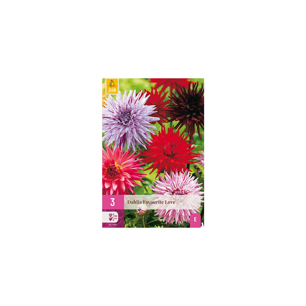 Velkokvětá dekorativní směs jiřinek 'Favourite Love' je vděčná letní květina, která vám bude dělat radost po celé měsíce. Jiřiny kvetou celé léto od července až do prvních mrazů. Tyto jiřiny dorůstají výšky asi 8-9 cm. Někdy je nutné květní stonky podepřít.
