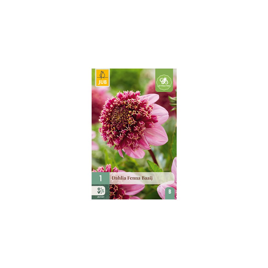 Jiřinka typu Anemone 'Fenna Baaij' je vděčná letnička, která vám bude dělat radost celé měsíce. Jiřinka 'Fenna Baaij' kvete celé léto od července až do prvních nočních mrazíků. Jiřina 'Fenna Baaij' dorůstá výšky přibližně 9-1 cm. Někdy je nutné květní stvoly podepřít.