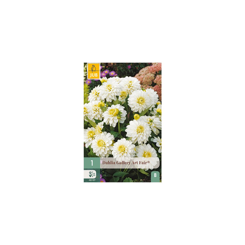 Jiřinka 'Gallery Art Fair' je vděčná letní květina, která vám bude dělat radost celé měsíce. Jiřinka 'Gallery Art Fair' kvete celé léto od července až do prvních mrazů. Jiřinka 'Gallery Art Fair' dorůstá výšky kolem 4 cm, a proto se hodí i pro pěstování v květináčích na terase nebo balkoně.