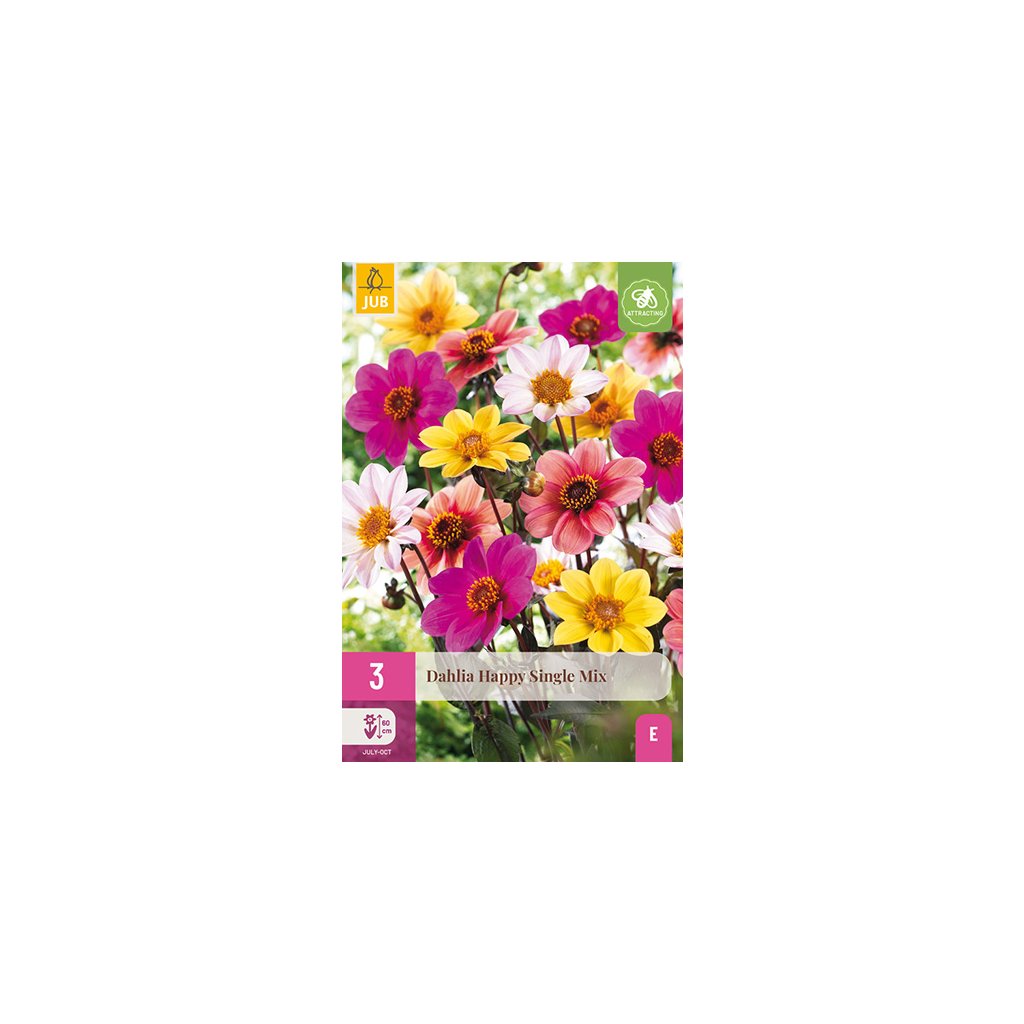 Směs jiřinek 'Happy Single Mix' je vděčná letní květina, která vám bude dělat radost po celé měsíce. Jiřiny kvetou celé léto od července až do prvních mrazů. Tyto jiřinky dosahují výšky asi 6 cm. Někdy je nutné květní stonky podepřít.