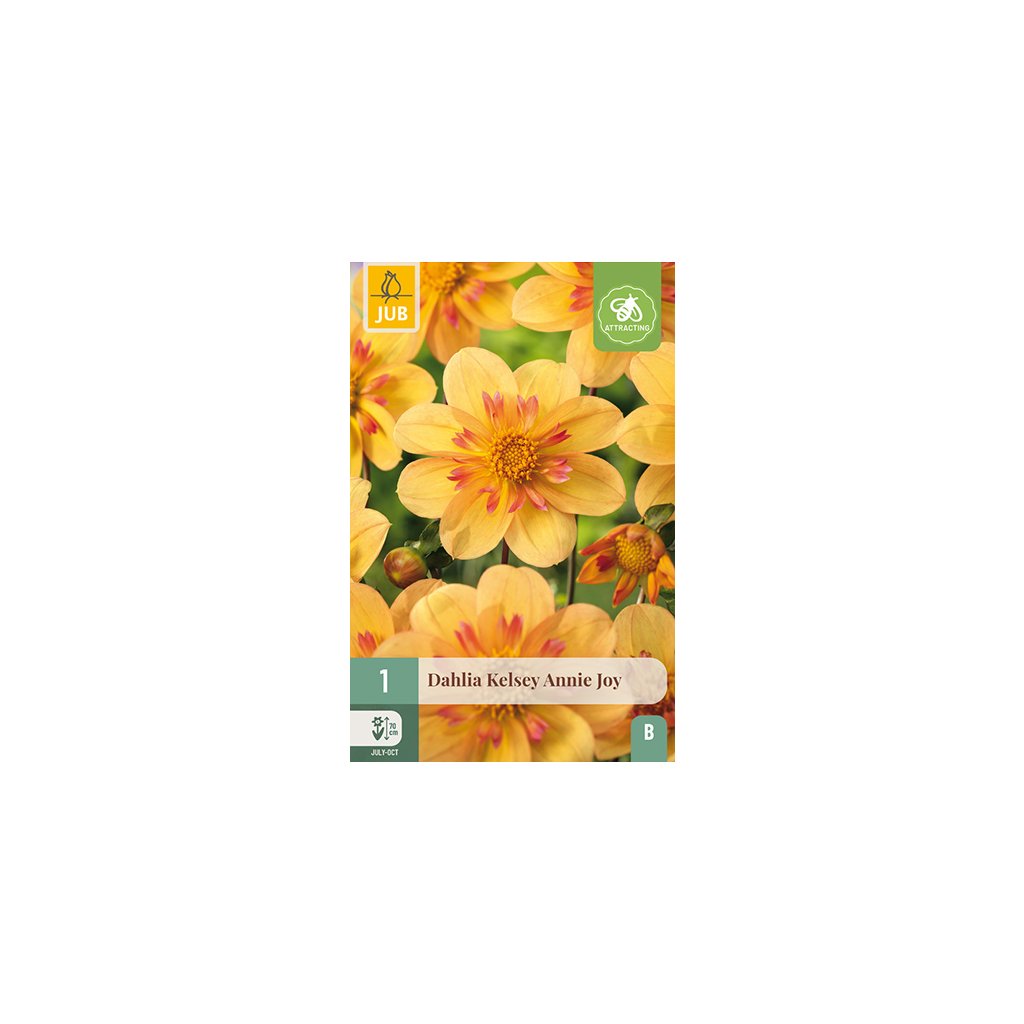 Speciální jiřinka 'Kelsey Annie Joy' je vděčná letní květina, která vám bude dělat radost po celé měsíce. Jiřina 'Kelsey Annie Joy' kvete celé léto od července až do prvních mrazů. Jiřinka 'Kelsey Annie Joy' dorůstá do výšky přibližně 7 cm. Tato jiřinka se proto hodí i pro pěstování v květináčích na terase nebo balkoně.
