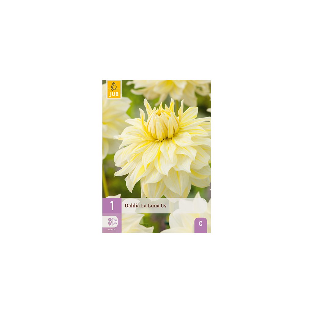 Velkokvětá dekorativní jiřina 'La Luna US' má nádherné květy a je vděčným letním květem, který vám bude dělat radost celé měsíce. Jiřina 'La Luna US' kvete celé léto od července až do prvních nočních mrazíků. Jiřinka 'La Luna US' dorůstá výšky přibližně 12-13 cm. Někdy je nutné květní stonky podepřít.