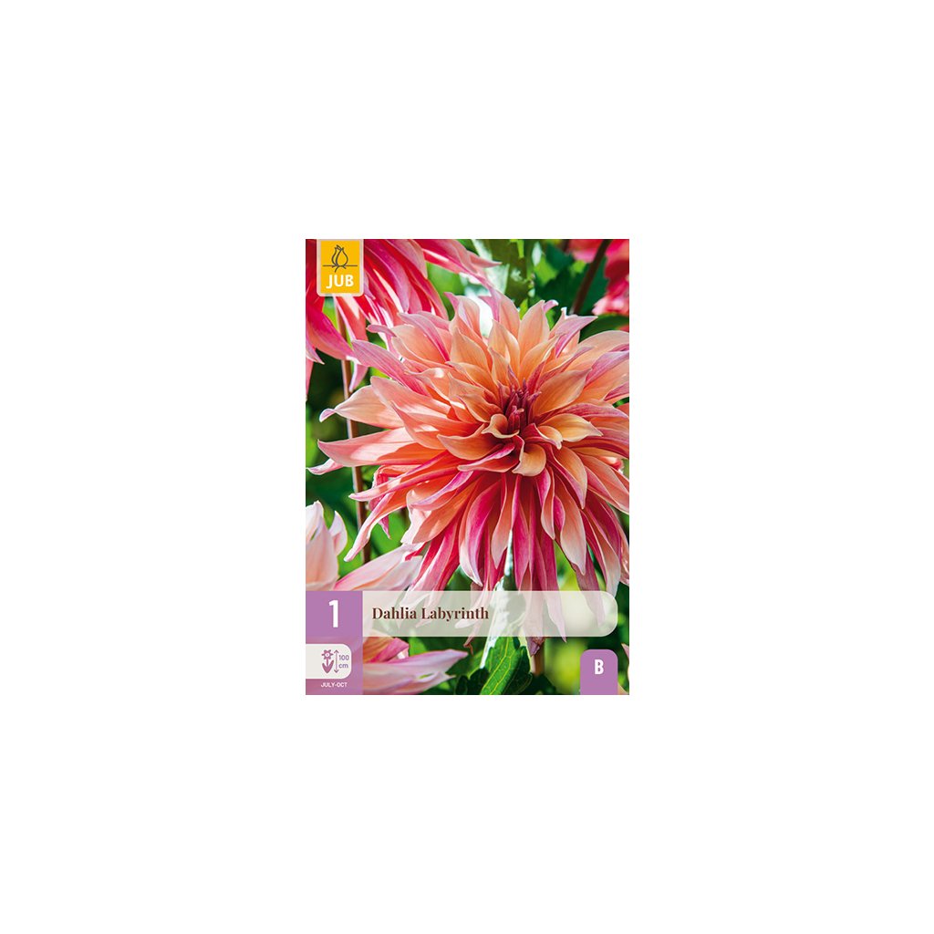 Velkokvětá dekorativní jiřina 'Labyrinth' má nádherné květy a je vděčným letním květem, který vám bude dělat radost celé měsíce. Jiřina 'Labyrinth' kvete celé léto od července až do prvních nočních mrazíků. Jiřina 'Labyrinth' dorůstá výšky přibližně 9-1 cm. Někdy je nutné květní stonky podepřít._x000D_ _x000D_ Hlízy jiřinek můžete vysazovat na jaře. Jiřiny jsou citlivé na mráz, proto si dejte pozor na pozdní (noční) mrazy. Vykopejte velkou výsadbovou jámu, zkypřete půdu a vyplňte ji kvalitní zeminou pro květináče. Hlízy opatrně umístěte do výsadbové jámy a zasypte je 3-5 cm zeminy. Vzdálenost výsadby hlíz je 3-6 cm. Hlízy ihned po výsadbě zalijte. Jiřinky kvetou nejhojněji na plném slunci. Hlízy po odkvětu uložte na bezmrazém místě a budete se z nich těšit po mnoho let._x000D_ _x000D_ Jiřiny lze dobře kombinovat s trvalkami a dalšími druhy jiřinek. Svým kulovitým tvarem jsou květy na záhoně opravdovým lákadlem pro oči. Jiřinky jsou také vynikající řezané květiny a mají dlouhou životnost ve váze. Nejlepší doba pro řez jiřinek je brzy ráno. Stonky umístěte přímo do vlažné vody s výživou pro řezané květiny.