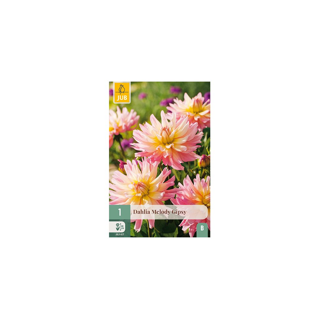 Velkokvětá kaktusová jiřina 'Melody Gipsy' je vděčná letnička, která vám bude dělat radost celé měsíce. Jiřina 'Melody Gipsy' kvete celé léto od července až do prvních nočních mrazíků. Jiřina 'Melody Gipsy' dorůstá výšky přibližně 6 cm. Tato jiřinka je proto velmi vhodná i pro pěstování v květináčích na terase nebo balkoně.