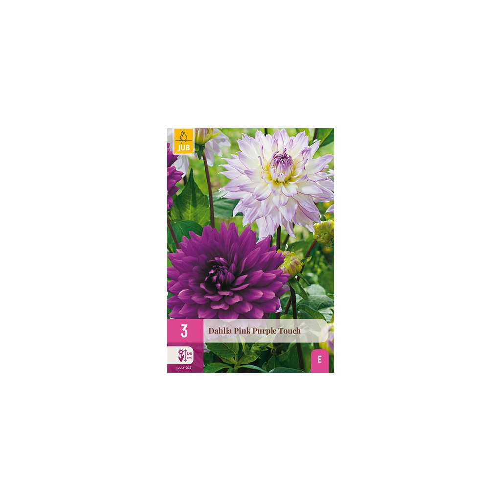 Velkokvětá dekorativní směs jiřinek 'Pink Purple Touch' je vděčná letní květina, která vám bude dělat radost po celé měsíce. Jiřiny kvetou celé léto od července až do prvních mrazů. Tyto jiřiny dosahují výšky přibližně 11-12 cm. Někdy je nutné květinové stonky podepřít.