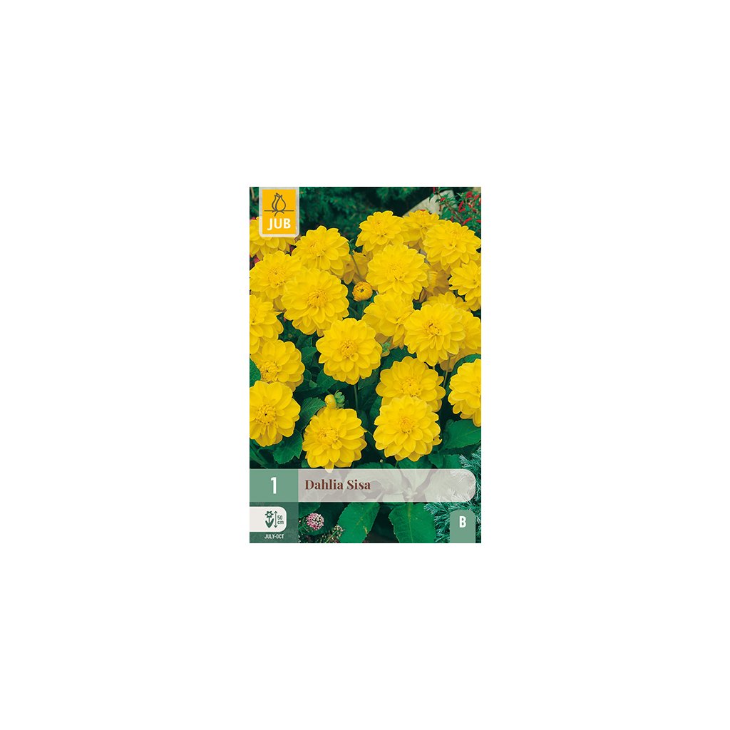 Dekorativní jiřina 'Sisa' s velkými květy je vděčná letní květina, která vám bude dělat radost po celé měsíce. Jiřina 'Sisa' kvete celé léto od července až do prvních mrazů. Jiřina 'Sisa' dorůstá do výšky asi 55 cm. dobře se hodí pro výsadbu v květináčích na terase nebo balkoně.