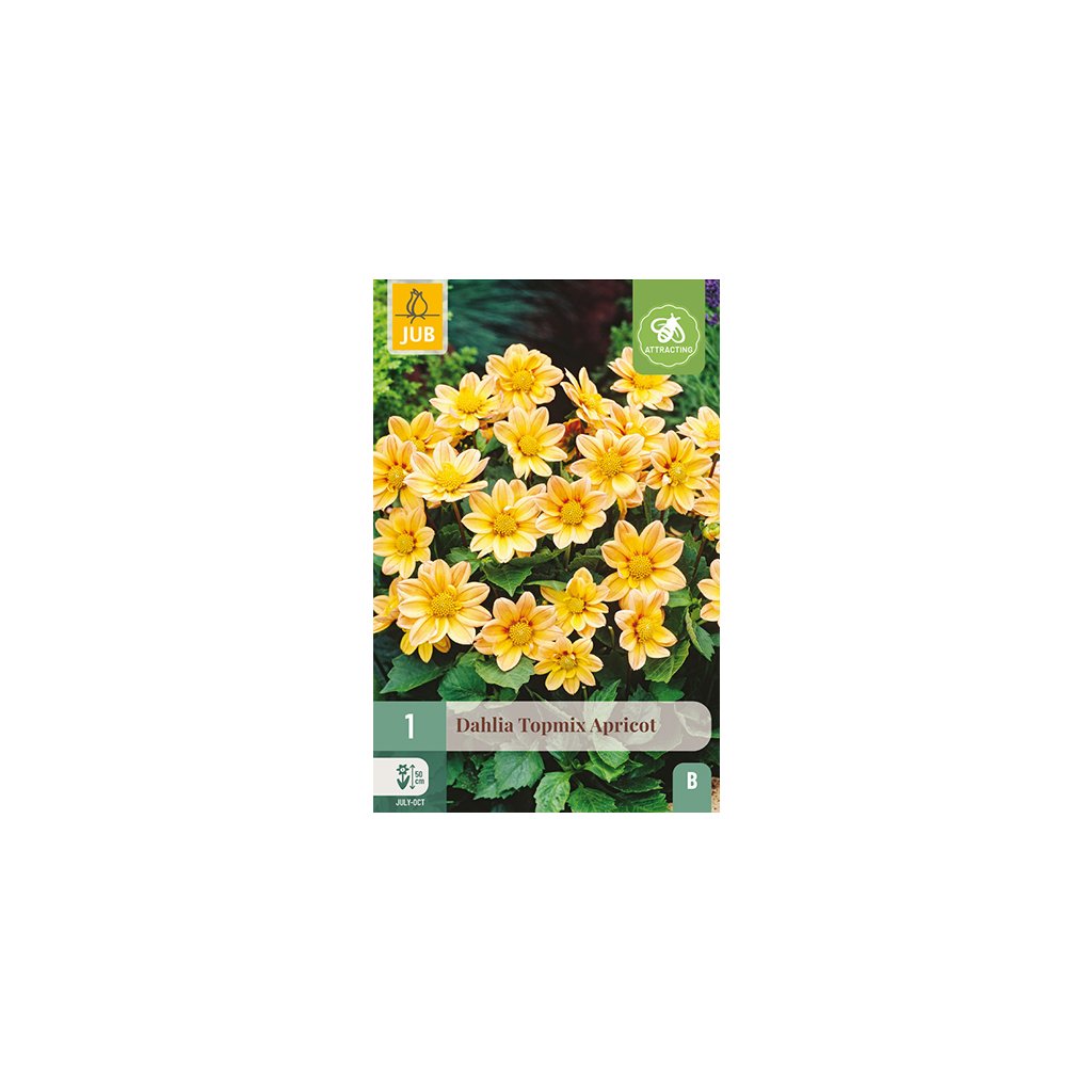 Jiřinka top mix Apricot se dobře kombinuje s nízkými trvalkami a dalšími nízkými odrůdami jiřinek. Jiřinka top mix je také vynikající řezaná květina a má dlouhou životnost ve váze. Nejlepší doba pro řez jiřinek je brzy ráno. Stonky ihned vložte do vlažné vody s výživou pro řezané květiny.
