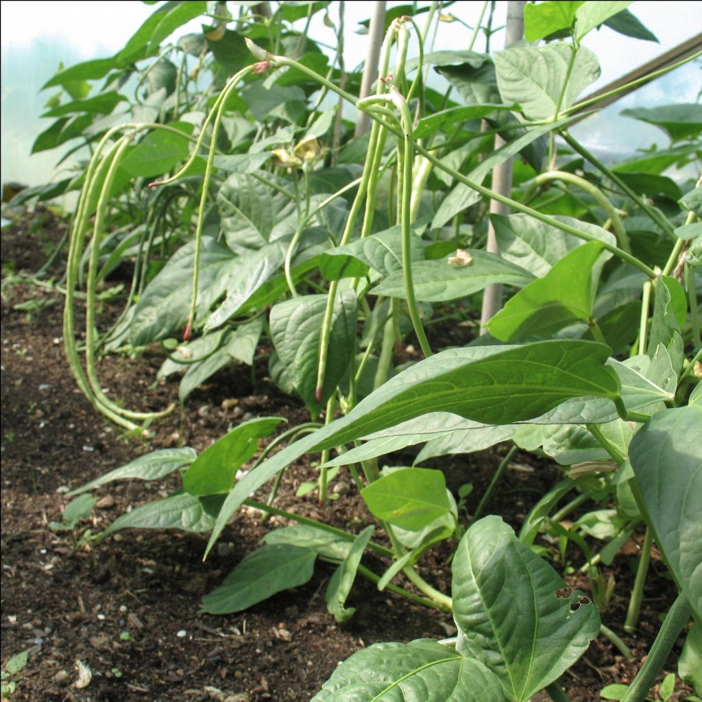 Skleníkové fazolky, jejichž lusky dosahují délky až půl metru! Plodí pouze ve skleníku. Rostlina potřebuje vysokou podporu, aby se měla po čem plazit. Pokud budete sklízet fazolové lusky pravidelně (i denně), podpoříte tím růst dalších lusků.