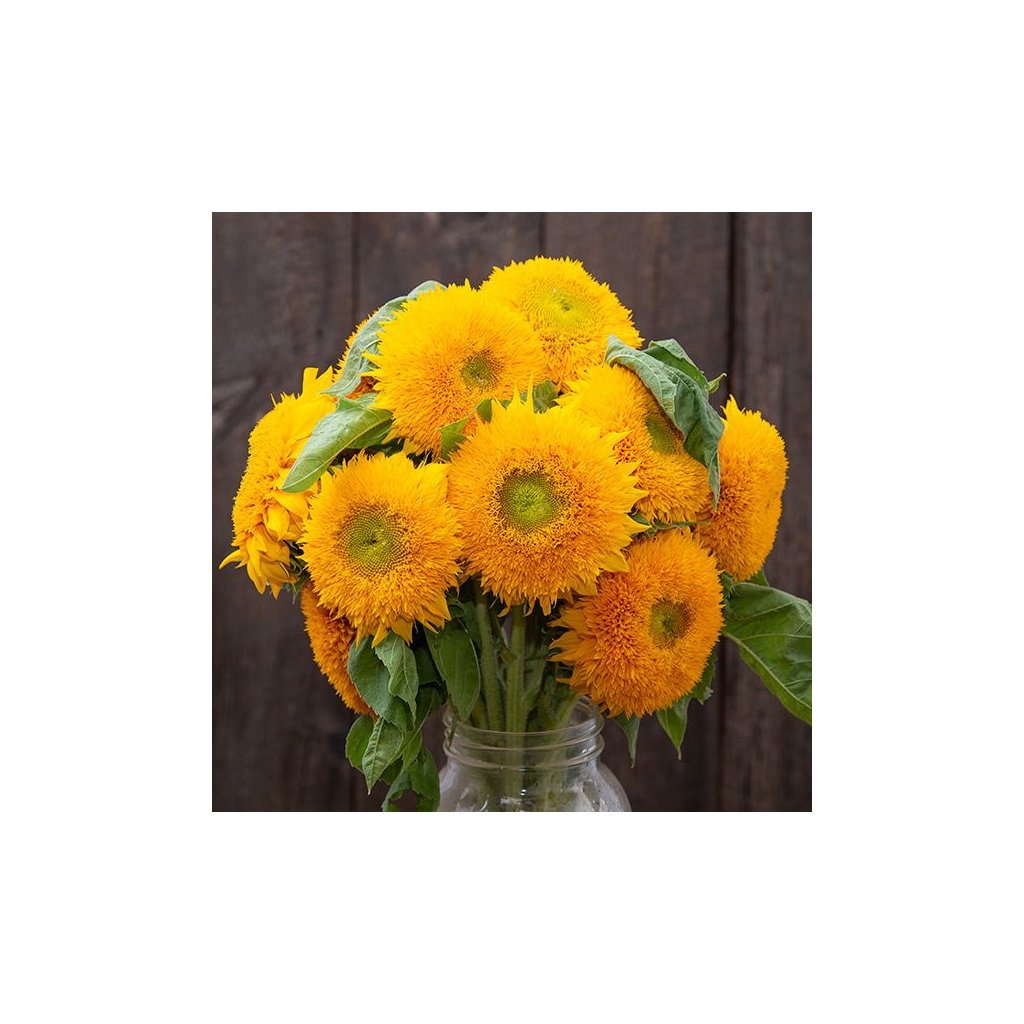 Nejroztomilejší slunečnice v našem sortimentu! Její okvětní lístky připomínají chlupatého medvídka, odtud i její jméno. Květy jsou jasně žluté barvy a zaujmou na první pohled. Jedna rostlinka vykvete několika květy, které jsou spíše menší (kolem 15 cm). Slunečnice je kompaktnějšího vzrůstu, výšky asi 60 cm, a tak se hodí i pro pěstování v nádobách. Květy jsou vhodné k řezu.