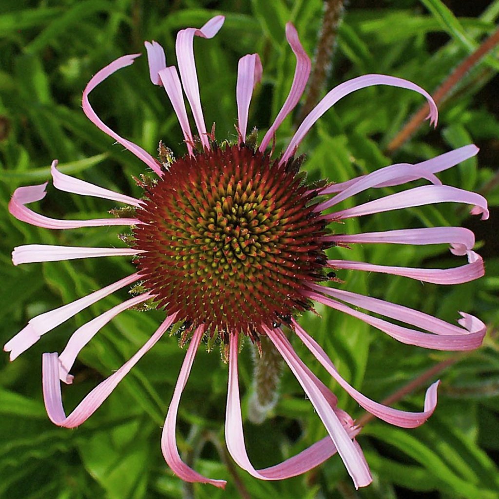 Třapatka bledá je krásná trvalka se světle růžovými květy, jejichž okvětní lístky jsou dlouhé a výrazně ohnuté směrem k lodyze.