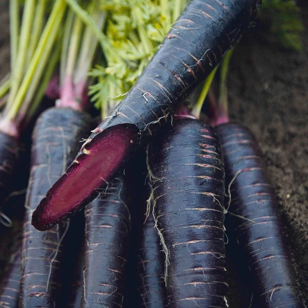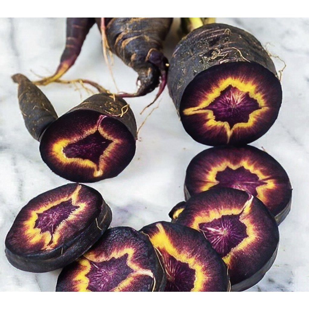 Černá mrkev se může zdát jako novodobá kuriozita, ale ve skutečnosti má hlubší kořeny než jejich oranžové sestřenice, které pocházejí ze Středního a Dálného východu. Dávno předtím, než se začala pěstovat oranžová a žlutá mrkev. Jejich fialová barva pochází z vysoké koncentrace anthokyanů, což jsou silné antioxidanty. Mnoho takzvaných černých mrkví je na vnější straně tmavě fialové s oranžovým jádrem, ale tato odrůda ('Black Nebula' nebo 'Deep Purple') je skrz naskrz tmavě fialové.