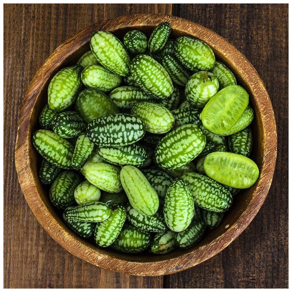 Krásné malinké plody připomínají tvarem i texturou meloun, ne však velikostí. Proto se jim také v angličtině říká „myší melouny". Rostlina plodí drobné okurčičky, které potěší nejen děti.
