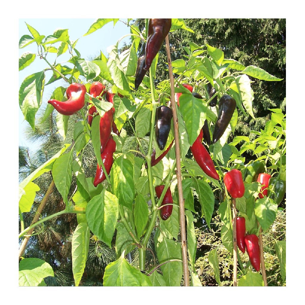Paprika Marconni plodí krásné šťavnaté podlouhlé papriky. Plody zrají z tmavě zelené do červené barvy.