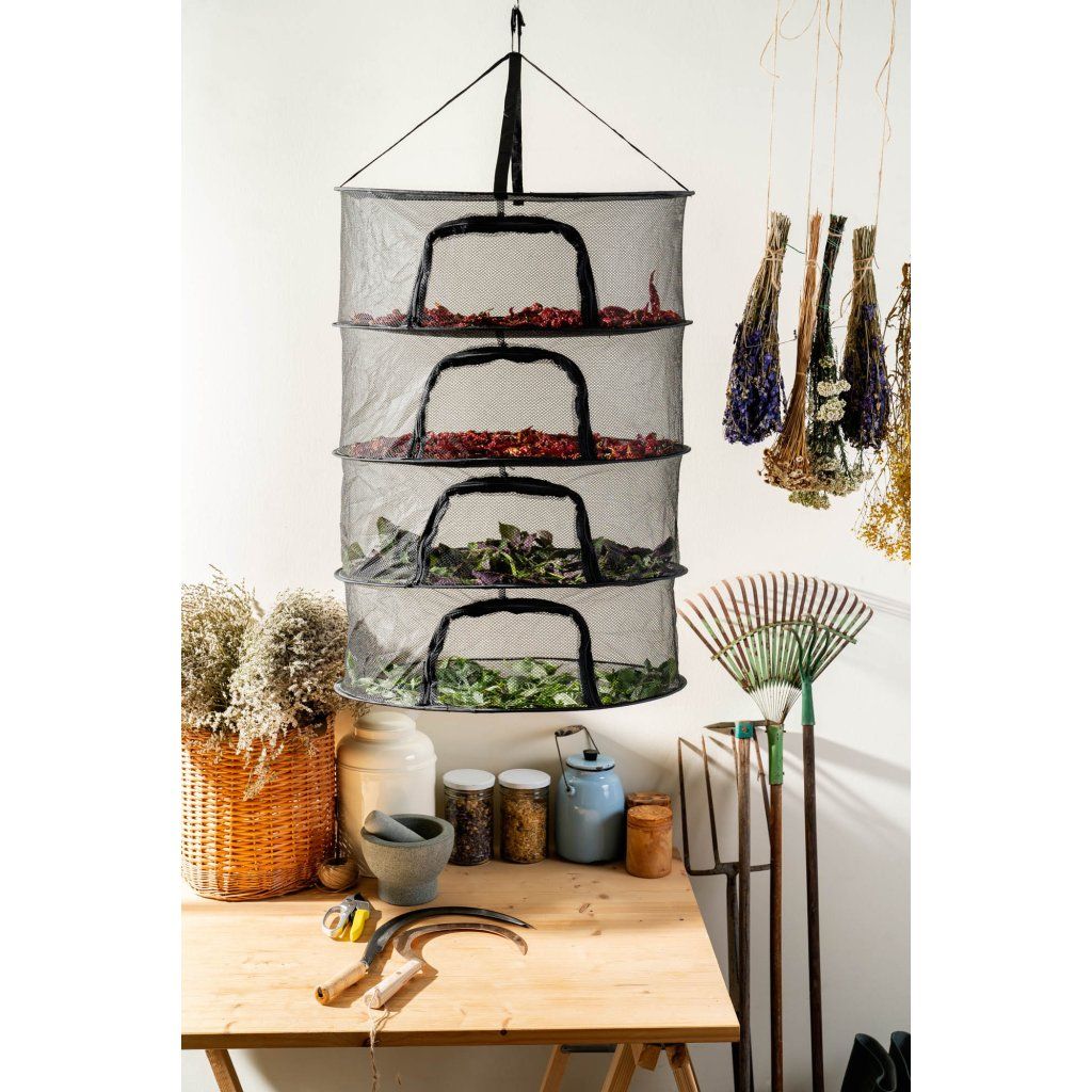 Závěsná sušicí síť se 4 patry, která využijete k sušení ovoce, bylinek, květin a hub. Velkou výhodou je individuální přístup na zip do každého patra. Výška sušicí sítě je 90 cm a průměr sušicí sítě je 60 cm.