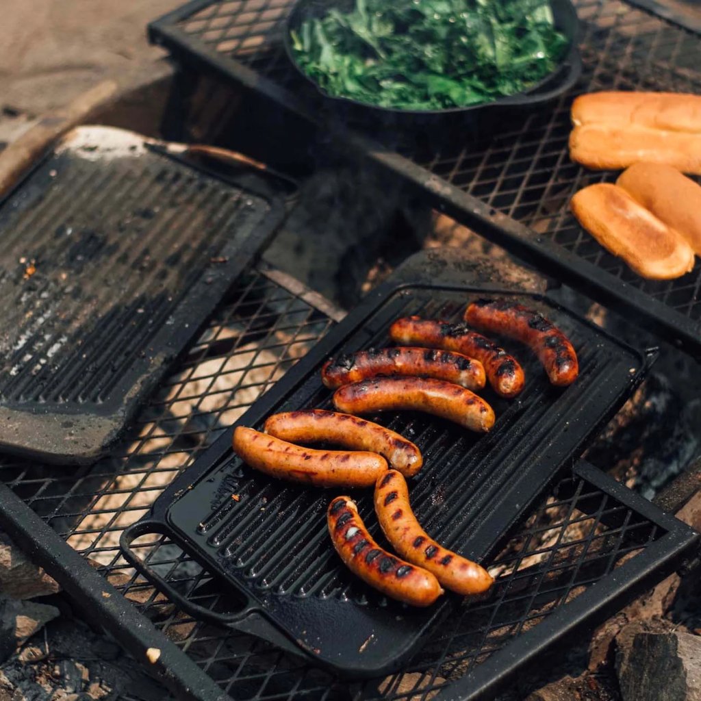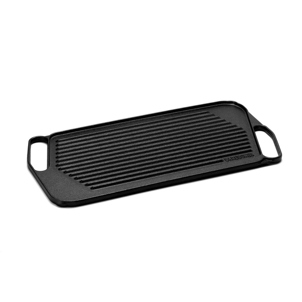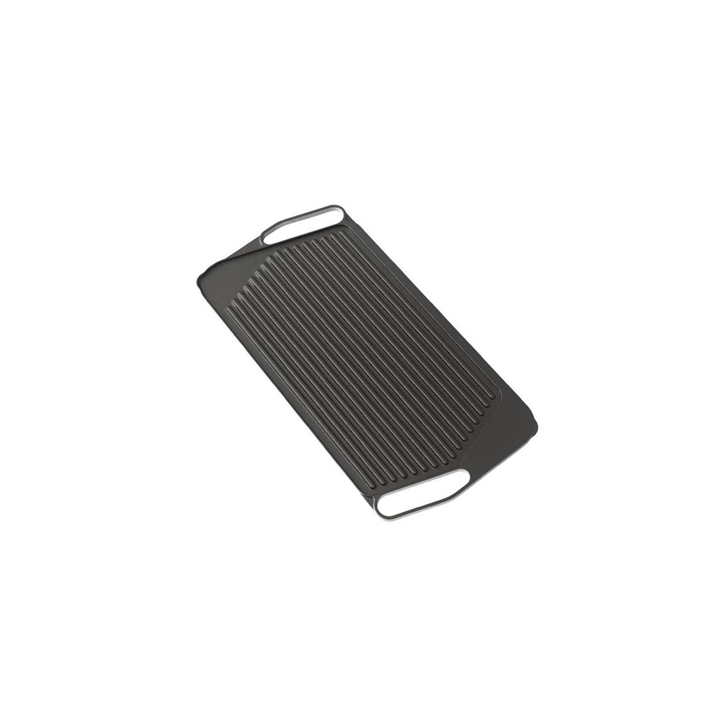 Oboustranný litinový rošt ideální pro vaření pro větší počet lidí. Plochou stranu můžete použít na vajíčka, krabí koláčky a fajitas, na grilovací straně pak můžete připravovat hamburgery, kebab a zeleninu. Přirozeně nepřilnavá litina se rovnoměrně zahřívá, takže jídlo je pokaždé důsledně propečené.