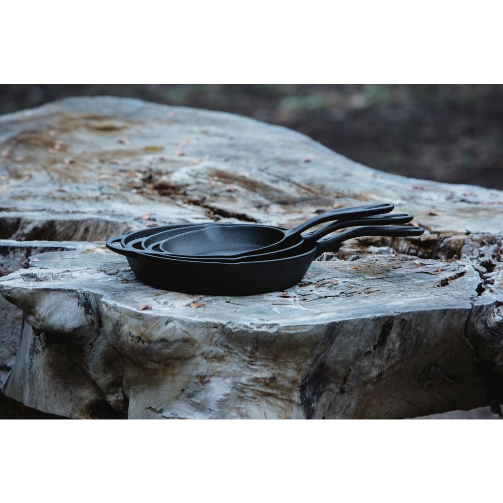 Přivítejte litinovou pánev, bez které se nebudete chtít obejít. Je vybavena pohodlnou rukojetí, dvojitou výlevkou a ikonickou technologií výdeje tepla. Zvýšený obsah oceli znamená, že při rychlé změně teploty nepraská ani se neláme, a o 15 % nižší hmotnost než u podobných litinových výrobků. Předem ochucená přírodními organickými oleji, takže je připravena k použití ihned po vybalení ze skříně na sporáku, v troubě nebo na otevřeném ohni. Vychutnejte si každou chuť. Zamilujte si každé jídlo. Vítejte v dokonalosti litinových pánví.
